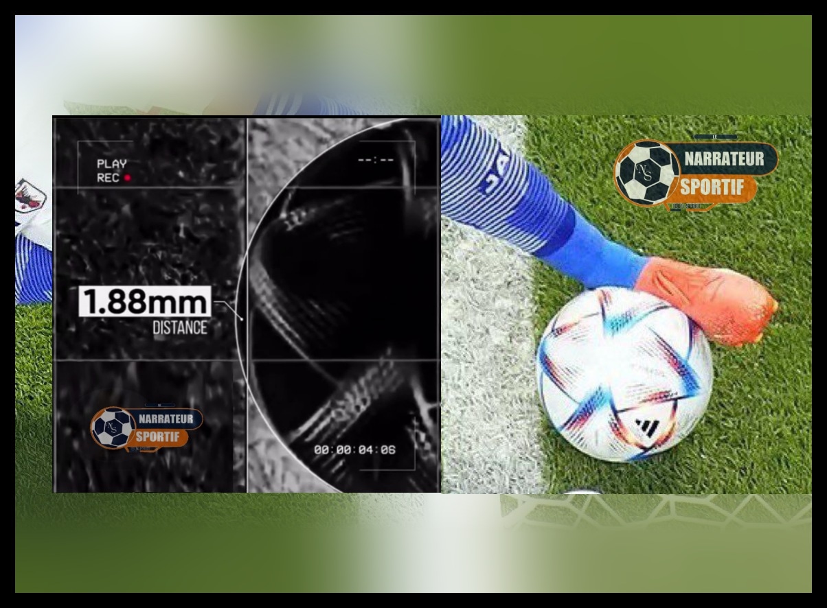 Selon les analyses faites,une distance de 1,88mm reste sur la ligne blanche ce qui confirme que le ballon n’a pas franchi entièrement la ligne.